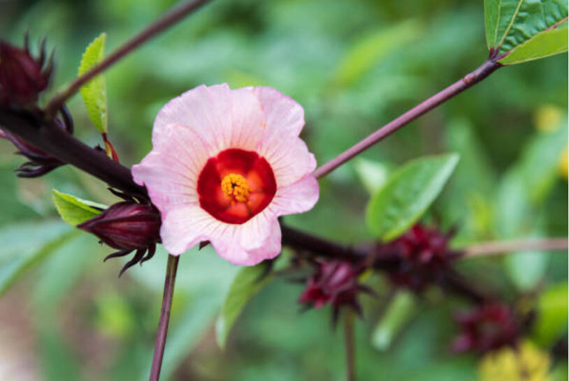 C’est une plante tropicale dont on utilise les calices rouges (autour de la fleur) pour préparer des infusions, jus ou confitures.